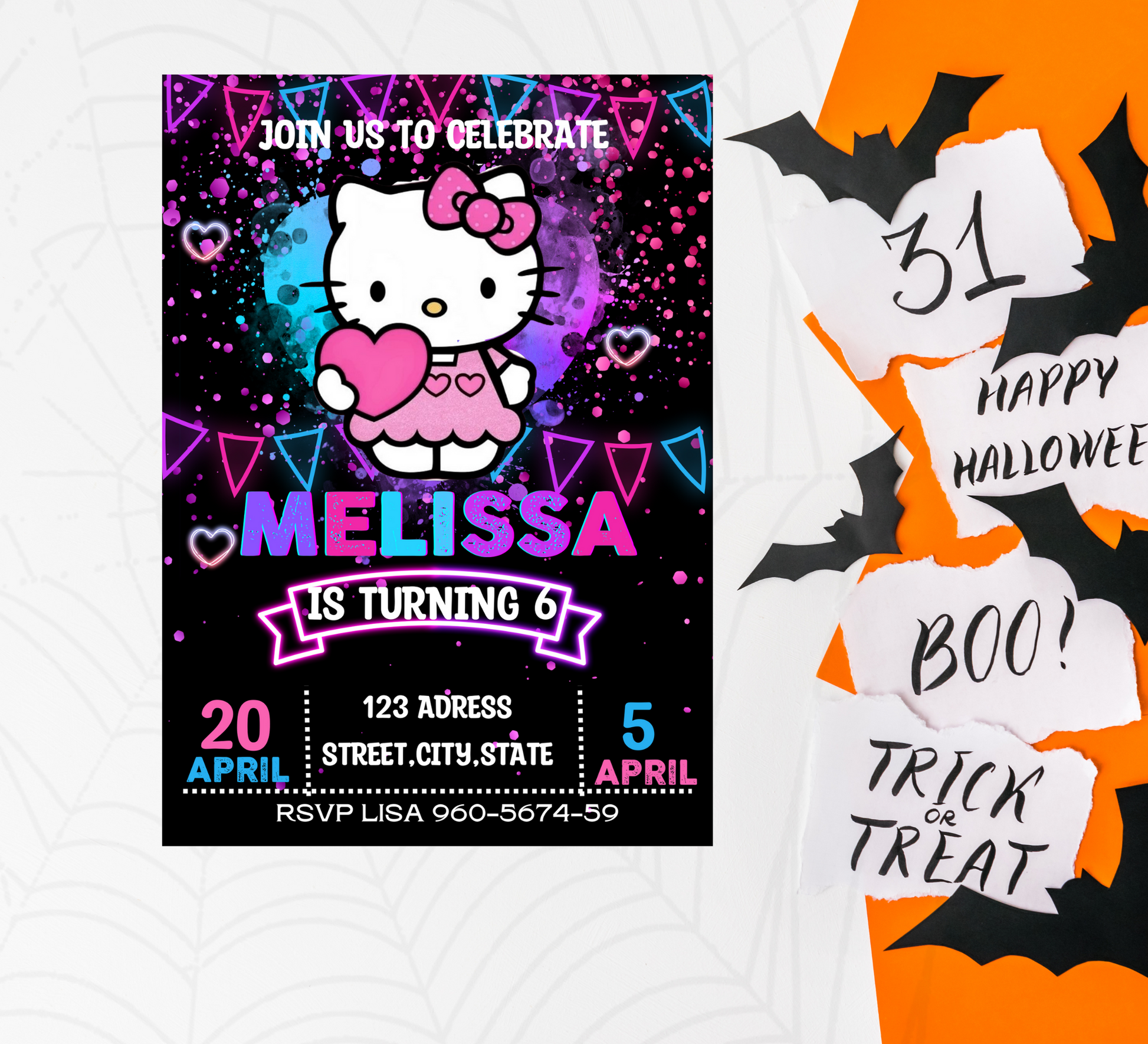 Light up your child’s celebration with this Hello Kitty Neon Birthday Invitation! 🌈💖✨ Designed with bold glow-party colors, kawaii details, and fun neon accents, this invitation is perfect for glow birthdays, neon parties, roller rink events, dance parties, and Hello Kitty–themed celebrations.