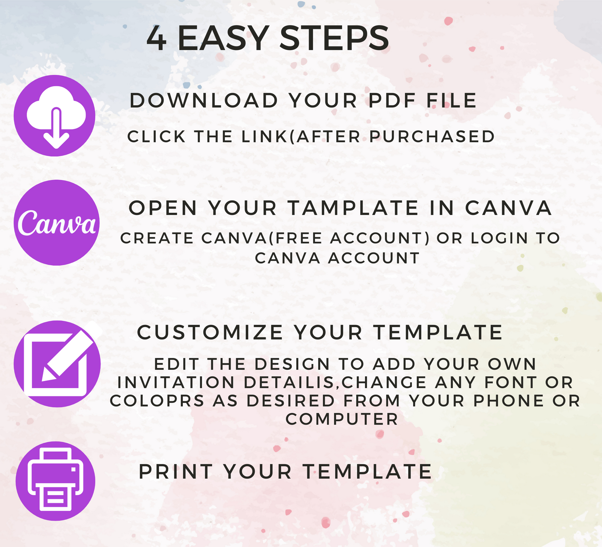 ★ An access link to your editable template that will be send to your e-mail address.